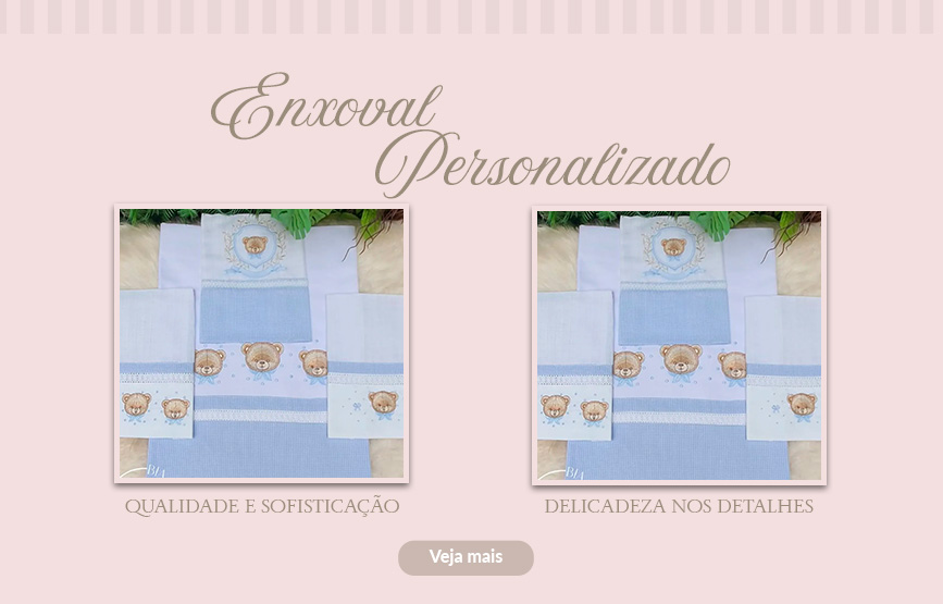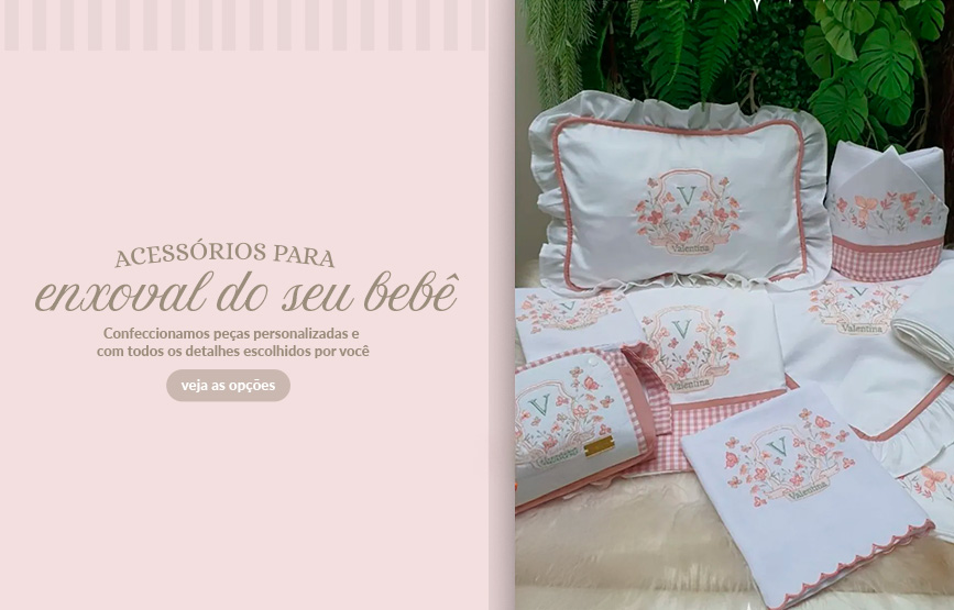 Se você está buscando um enxoval com toque especial, venha conhecer as nossas opções. Cada peça é feita sob encomenda, para que você tenha exatamente o que sempre sonhou para o seu bebê.