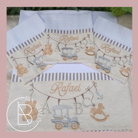 Acompanha chaveirinho com a letra inicial do nome do bebê