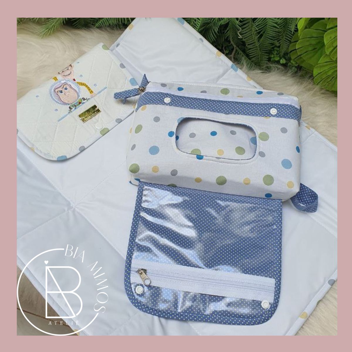 Porta Fraldas e lenço umedecidos com bolsinho para pomada