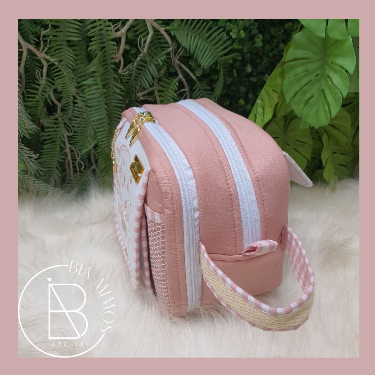 Farmacinha grande de luxo , confeccionada em tecido tricoline , com várias repartições , bolsinhos para guardar os remédios do bebê